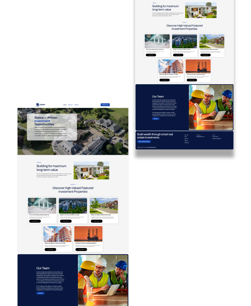 With a strong focus on African real estate and alternative investments, Didara identifies, develops, and manages high-quality commercial and residential property, as well as mining and energy opportunities across key growth markets. Our approach combines deep local insight, disciplined due diligence, and a commitment to long-term value creation.