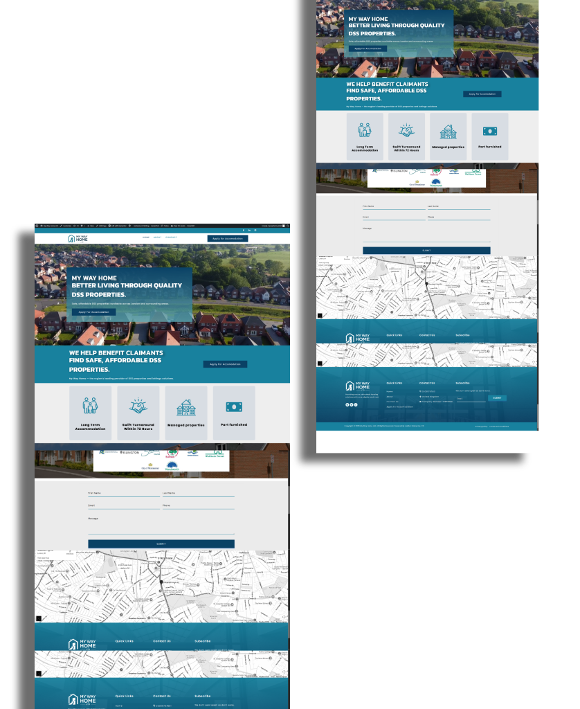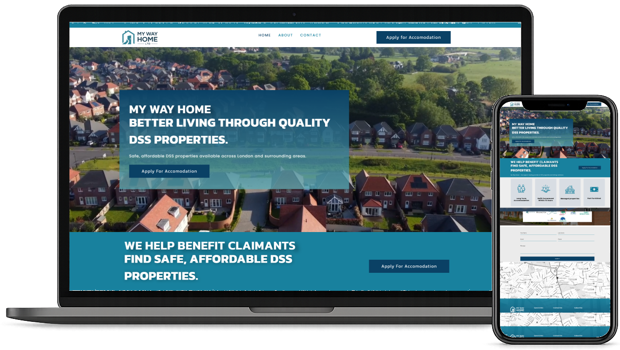 We developed the website and digital presence for My Way Home LTD, a specialist lettings company providing reliable housing solutions for tenants claiming benefits. The platform highlights their focus on secure, long-term accommodation with no rent in advance or deposit required, alongside managed, part-furnished properties and a swift 72-hour turnaround.