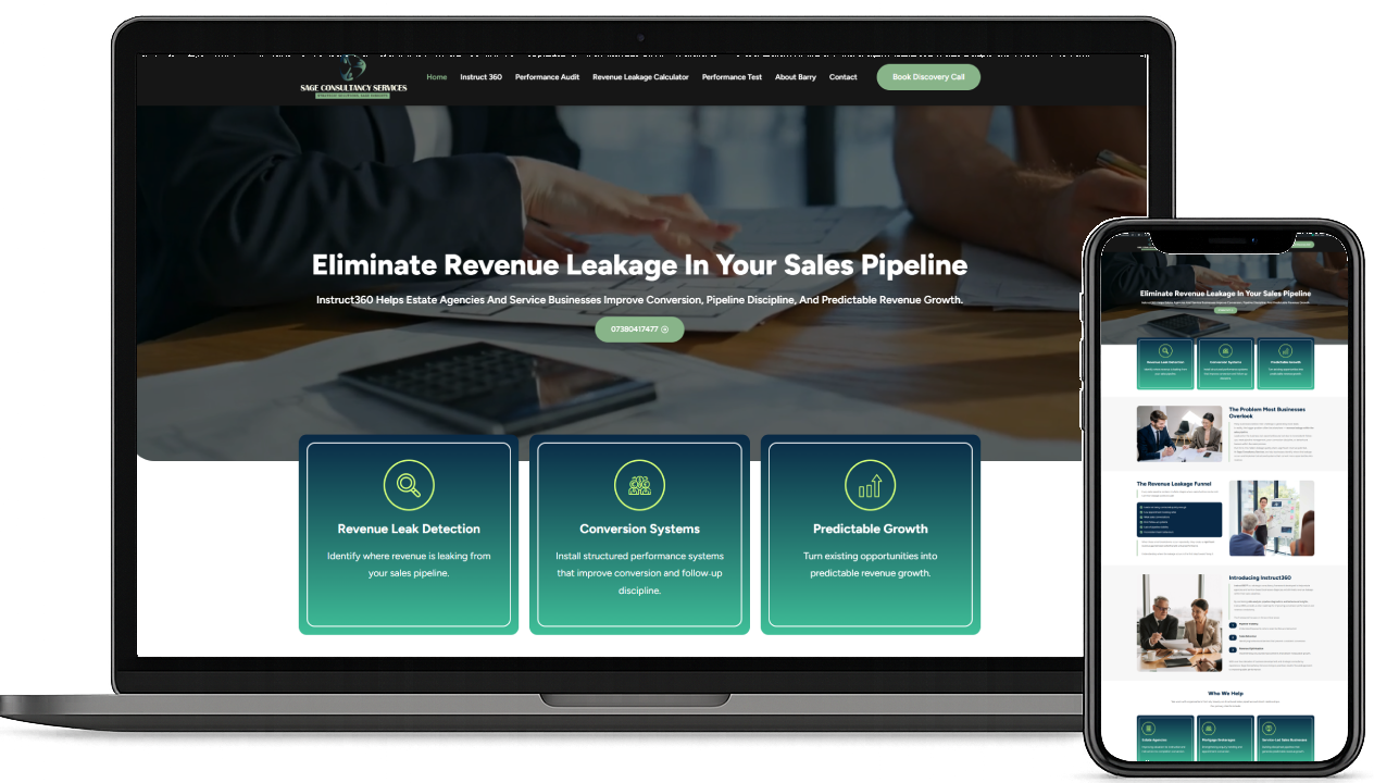 We developed a strategic, conversion-focused website for Sage Consultancy Services, designed to position the brand as a specialist authority in identifying and eliminating revenue leakage within sales pipelines. The platform clearly communicates their core value proposition—helping estate agencies and service-based businesses transform existing opportunities into predictable, measurable revenue growth.